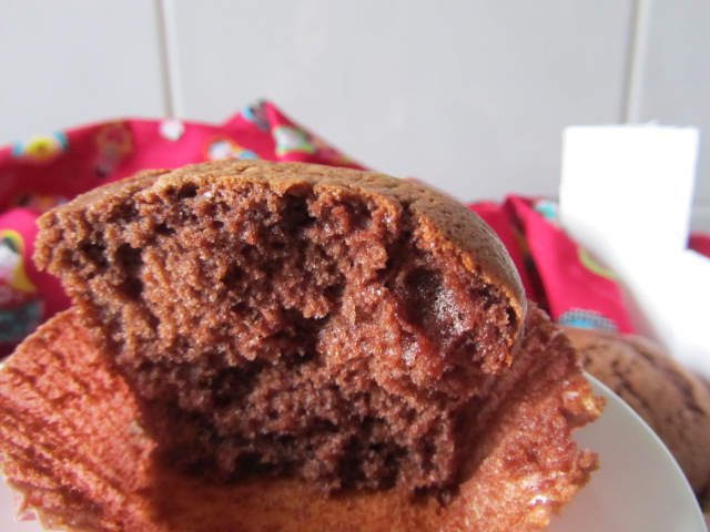 Bata os ovos om o açúcar até obter uma massa volumosa (bater 4 minutos), de seguida adicione as natas, a mousse de chocolate e bata mais um pouco. Envolva suavemente a farinha com o fermento . Coloque a mistura em forminhas de papel que por sua vez são colocadas dentro de formas de metal. Leve a cozer em forno a 180ºC, durante 15 minutos (o teste do palito é infalível, se sair seco está cozido). Rendeu 20 bolinhos.
