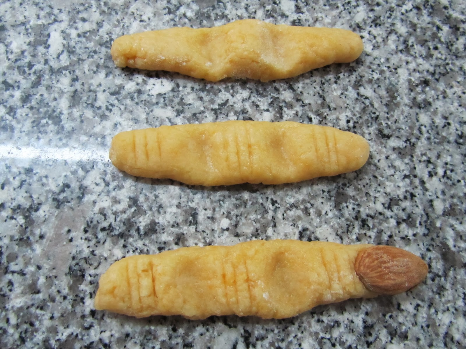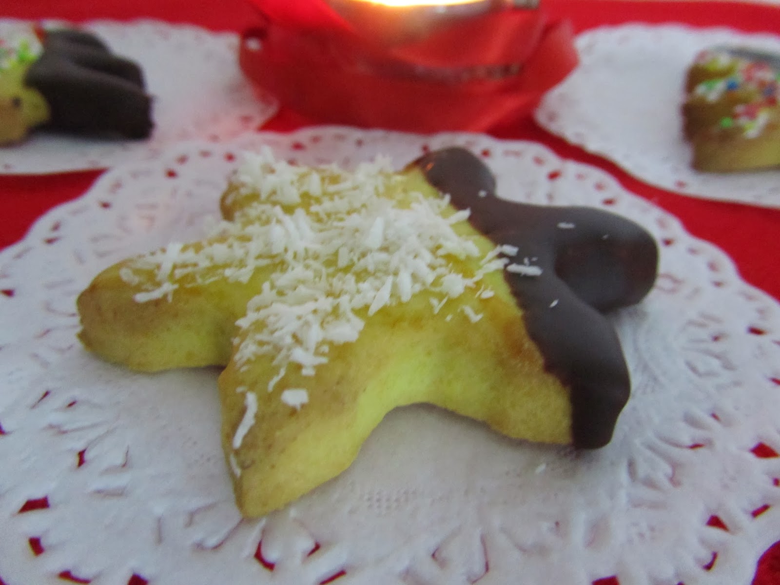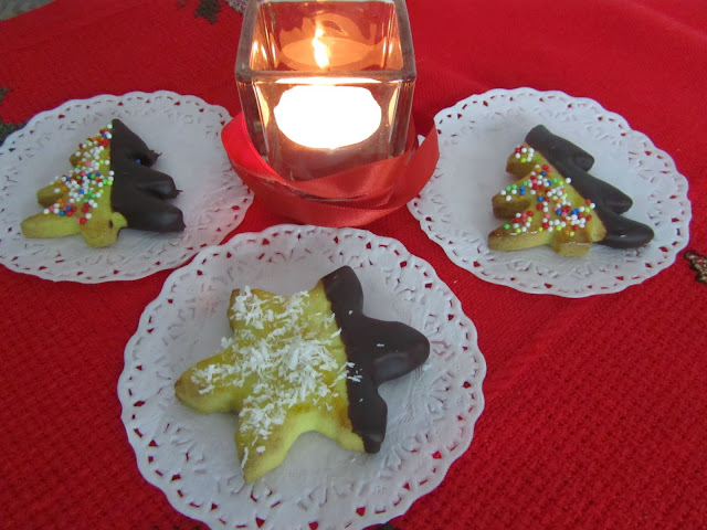 Estender a massa com 3 milímetros de espessura e recortar com os cortadores de metal. Levar ao forno a 180º C durante 8 minutos. Retirar do forno e deixar a arrefecer numa grade de metal. À medida que arrefecem ficam mais crocantes.
