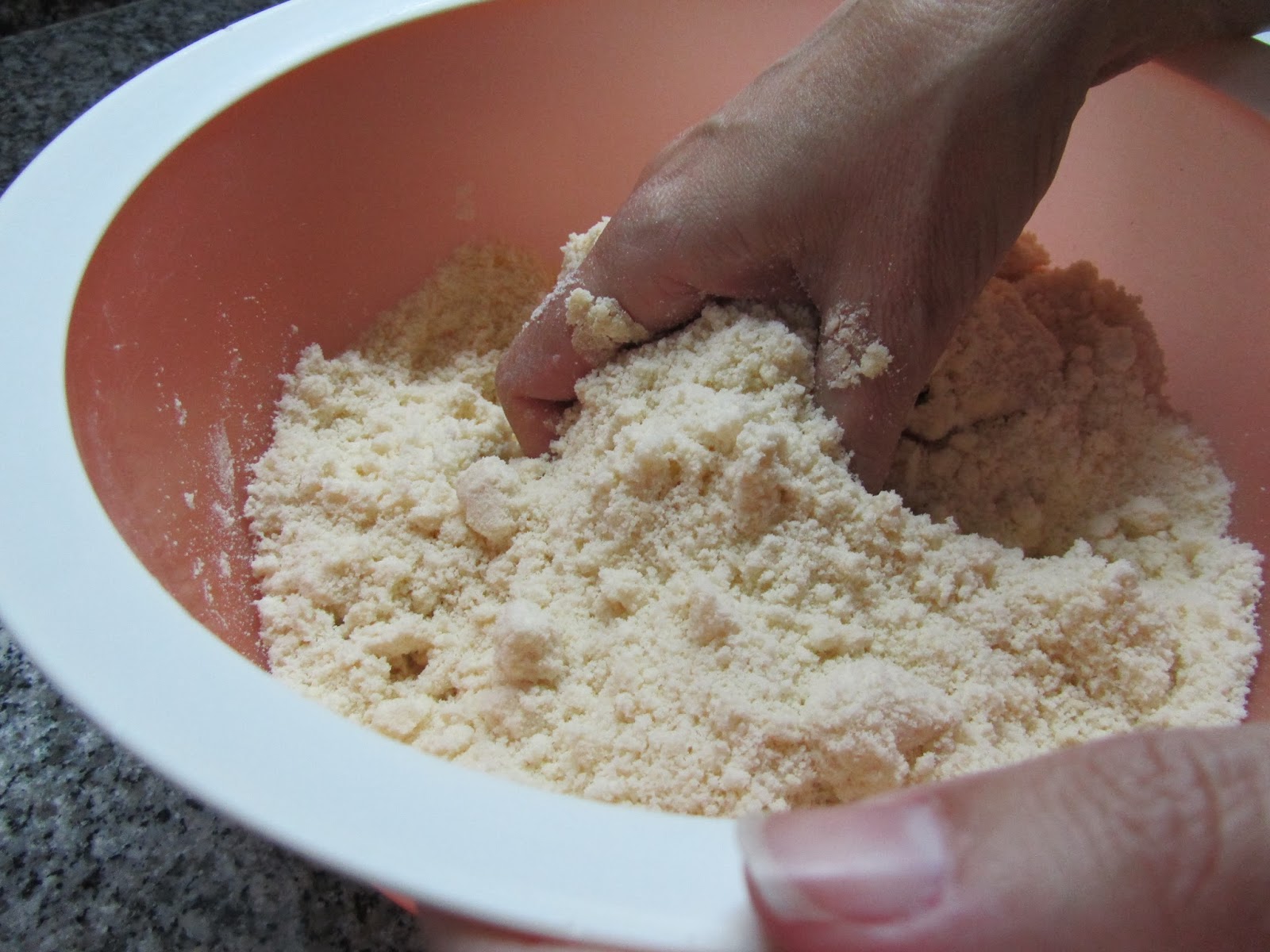 Bater a margarina com os açúcares. Adicionar os ovos um a um. Juntar o cacau e por fim a farinha. Envolver a massa em película aderente e levar ao frigorífico durante 1 hora.