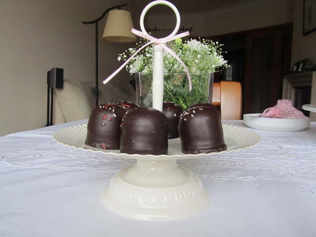 O andar superior do bolo era de limão e côco e o inferior de chocolate. Servi os bolos com uma bola de gelado de baunilha.